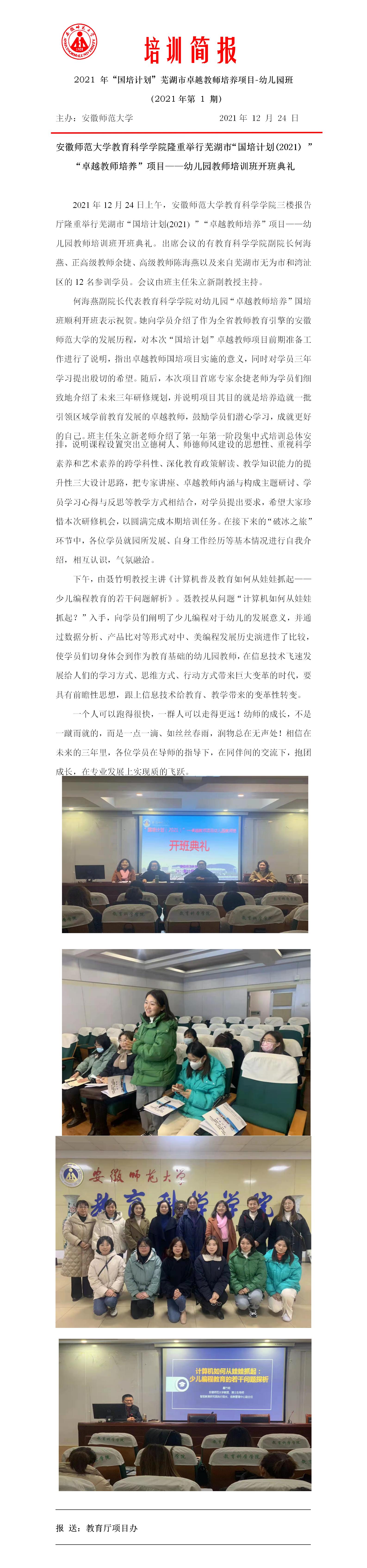 【2021卓越教师培养】芜湖市卓越教师培养项目-幼儿园 2021年第1期