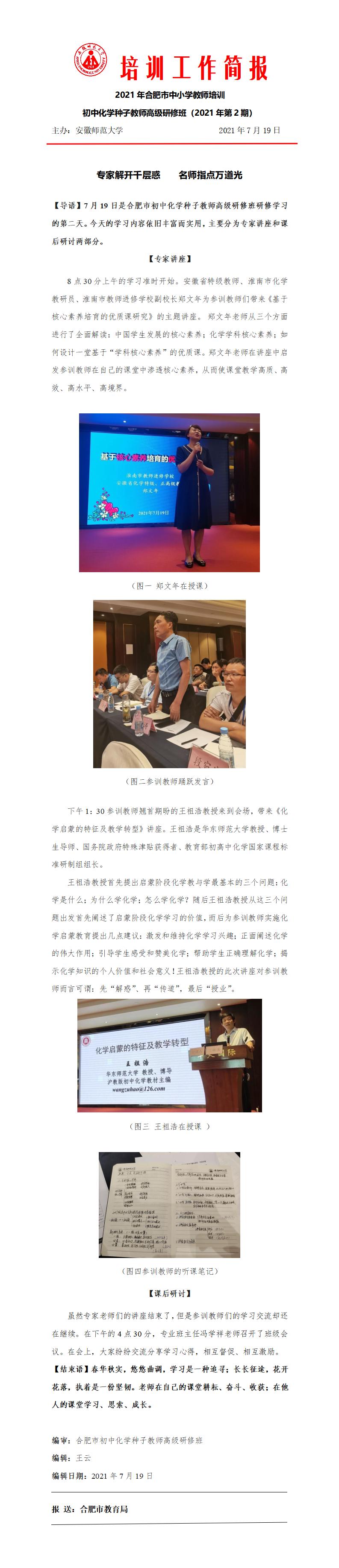 【委托培训】2021年合肥市初中化学种子教师高级研修班工作简报(第2期)