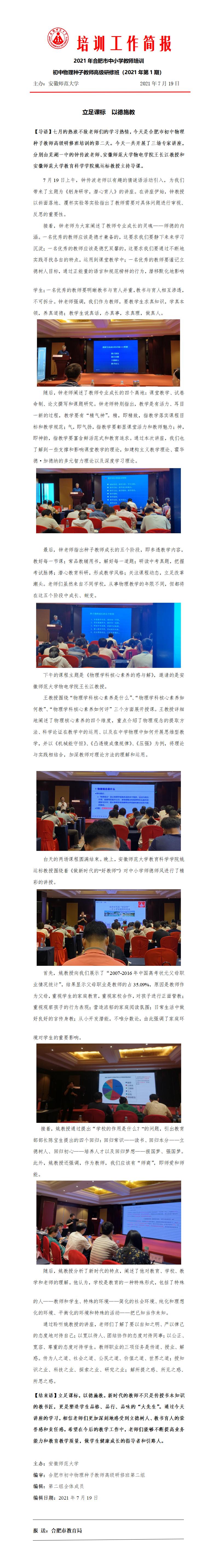 【委托培训】2021年合肥市初中物理种子教师高级研修班工作简报(第1期)