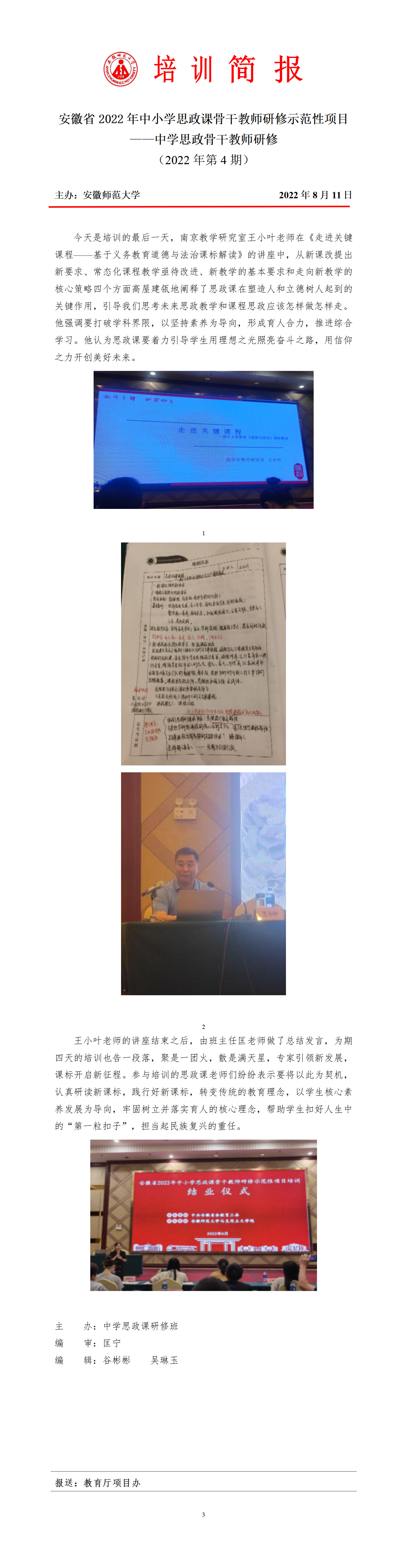 【2022省培师干训】初中思政——中学思政课骨干教师研修培训简报2022年第4期