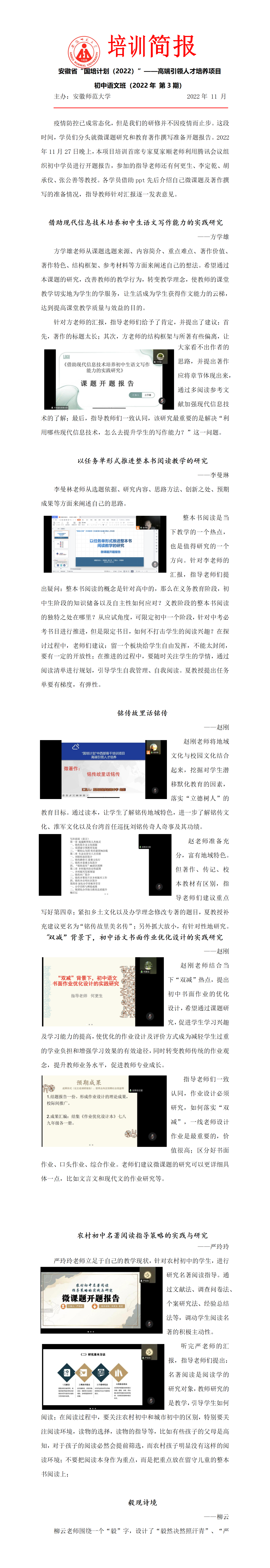 【2022省统招国培】高端引领人才项目初中语文培训简报第3期