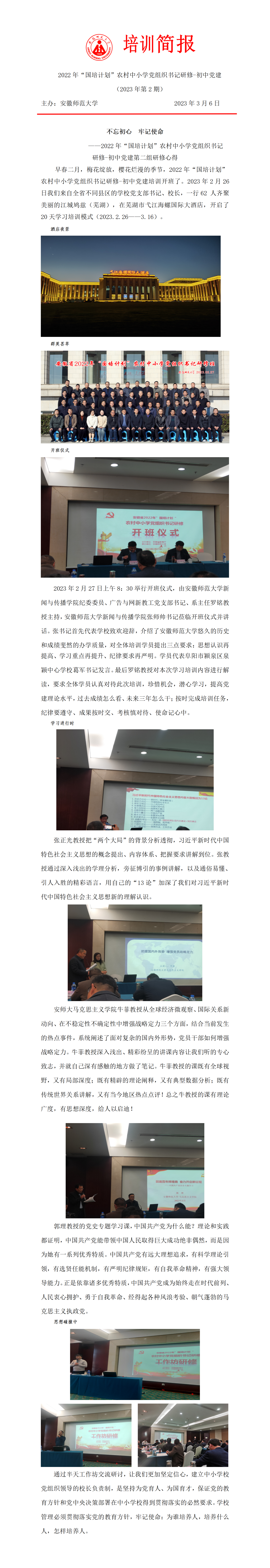 【2022省统招国培】农村中小学党组织书记研修-初中党建培训简报2023第2期