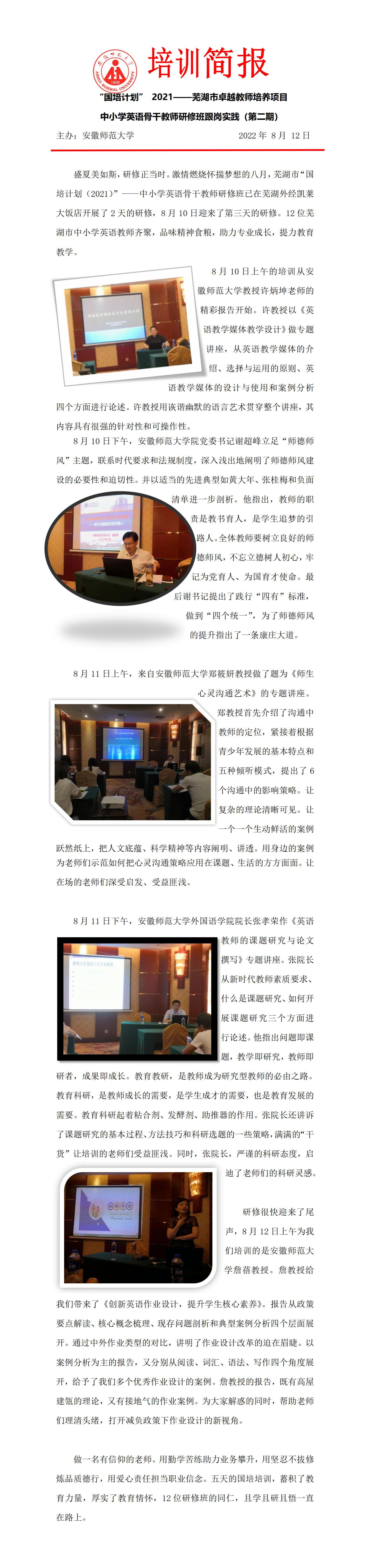 【2022卓越教师培养】芜湖市卓越教师培养项目义务教育英语培训简报第2期