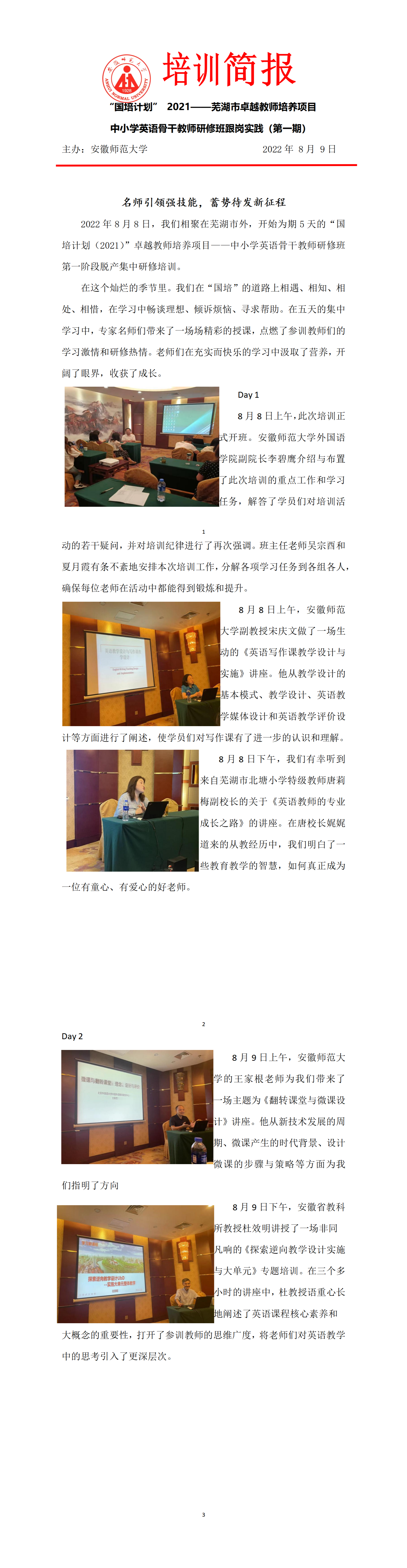 【2022卓越教师培养】芜湖市卓越教师培养项目义务教育英语培训简报第1期