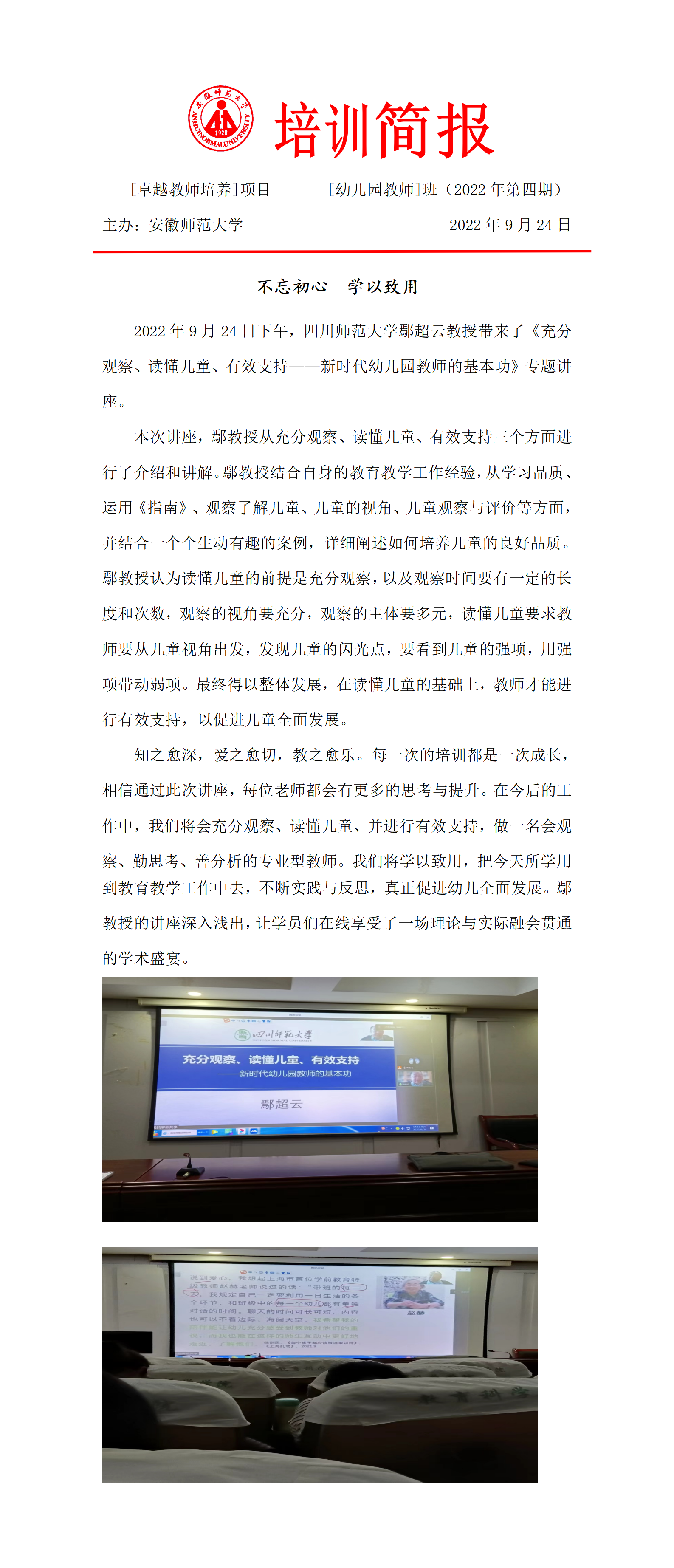 【2022卓越教师培养】芜湖市卓越教师培养项目幼儿园骨干教师培训简报第4期