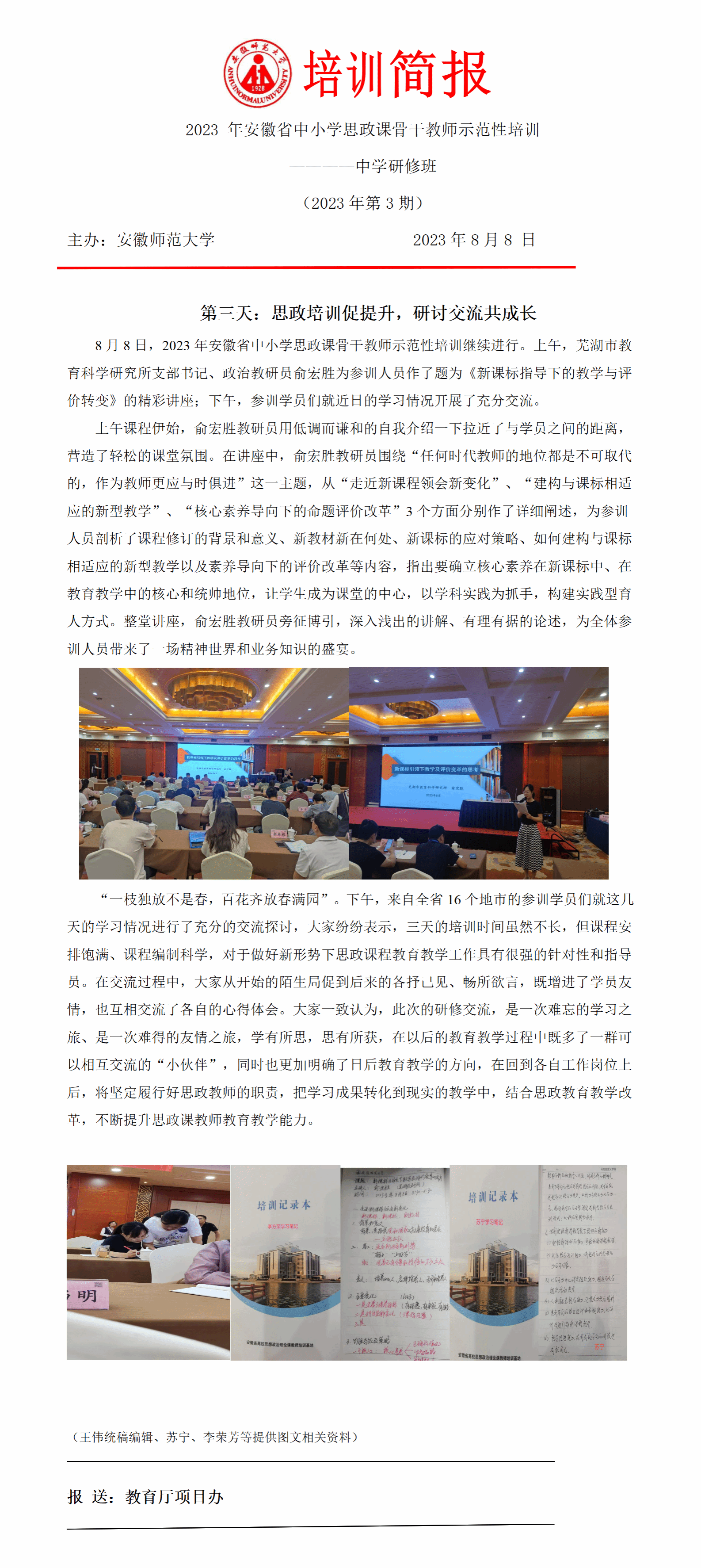 【2023省培师干训】思政——中学思政骨干教师研修培训简报2023年第3期