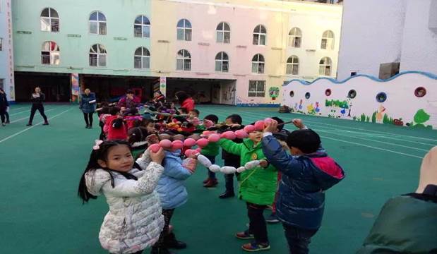 我园近两年来以开发民间游戏为特色,结合市级课题《农村幼儿园民间游戏的实践与研究》,将所有的游戏都配上相应的儿歌,并将其贯穿于幼儿一日活动之中,促进了幼儿体能、艺术表现、语言表达、社会认知及良好品德的发展。