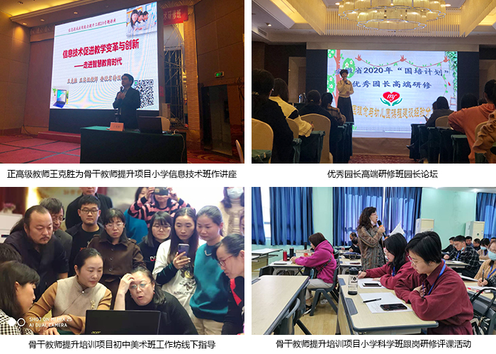 经过认真的准备,10月,10个项目34个班级按计划陆续开班,各项目在实施过程中,对标国培3.0要求和采购需求,强化师资和资源保障,突出模式创新、实践环节和应用导向,以提高学员的教学创新和研究能力为培训目标,注重高质量培训成果的生成。每个项目设置首席专家,整体规划教学实施,监控教学效果。部分项目设立“双班主任”,提供学习服务和生活服务双重保障,继教院培训部提供24小的后勤保障工作,切实落实了“精细实”服务。3个项目9个班次依托信息管理平台实行动态二维码和定位签到、班级管理,开展教研交流、混合式工作坊研修,线上线下贯穿一体,线下成果线上沉淀。