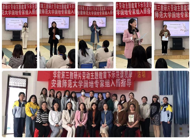 在劳动教育主题下的教学示范课观摩研讨中,洪巷镇中心幼儿园钟蓉示范大班语言课《朱家故事》,无为市南惠幼儿园刘文艺老师示范大班科学课《豆“趣”》,并进行了课后教学反思,两组评课教师代表围绕活动目标、组织形式、幼儿的参与度等方面问题进行了剖析和多维度点评。观摩后,陈海燕对两堂示范课进行了总结评价,对评课教师代表进行了指导,并就活动中出现的问题提出了意见和建议。