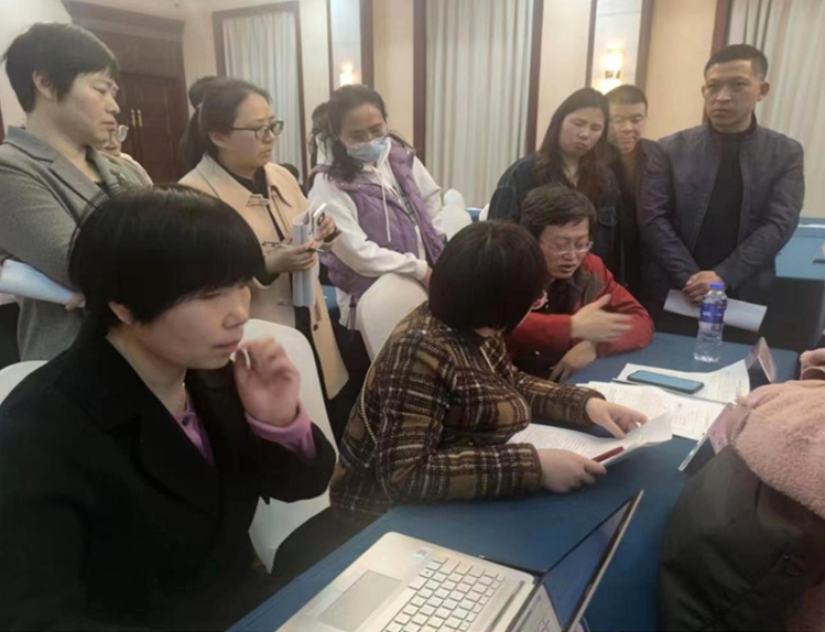 培训开展以来,初中和小学两个班的学员们白天聆听精彩的讲座,晚上携带着电脑和学习材料,准时来到弋江厅教室,每天以不同的方式开展线下工作坊研修,促进白天培训所学理论转化为成果实践。4日晚,学员们集中在弋江厅,在董教授指导下,修改《优秀数学教师团队建设与培养方案》初稿。5日晚,在学员的围绕下,董教授分析了有效开展优秀数学教师团队建设办法,对学员提出的个性问题进行回应,并引导学员开展讨论。6日晚,先开展“团队研磨提升”专题会,董教授详细分析了四篇论文案例,对学员团队建设方案的初稿提出完善建议;邀请七天网络的技术专家为大家演示通过教育质量检测系统来了解和分析学生的数学核心素养水平,提升学员信息化素养;让来自萧县教体局的专家型学员姜峰为大家演示如何使用信息技术手段通过美篇来记录课堂笔记、发布培训消息和报道,学员们受益匪浅。7日晚,董教授分析学员成果定稿,指导学员在训后如何建立优秀数学教师团队,如何开展培训讲座,并引导学员开展交流讨论,互相汲取经验。学员们都高质量地完成了一项结业成果。