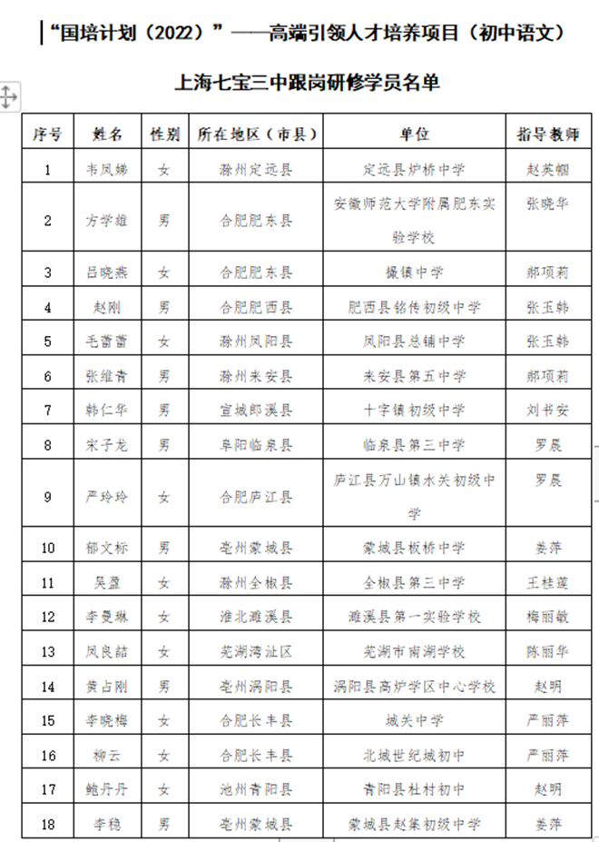 安徽省“国培计划(2022)”高端引领人才初中语文班赴上海七宝三中跟岗研修