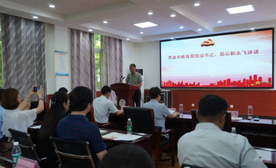 界首市教育局党组书记、局长郭永飞针对全市落实中小学校党组织领导的校长负责制具体情况作了报告。