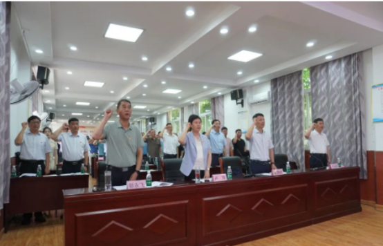 会前,全体与会成员面向党旗重温入党誓词。
