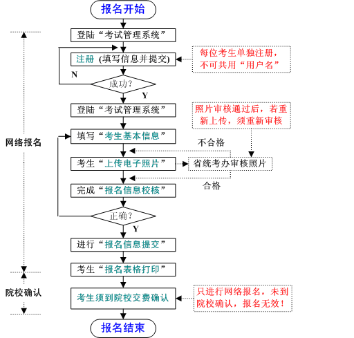 3、阅读报名流程及注意事项,填写并提交报名信息和上传电子照片(照片具体要求见报名网站说明);