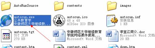 然后从“我的电脑”选择“打开”光盘,在弹出的资源管理器中,点击文件“autorun.exe”进入播放菜单。如下图: