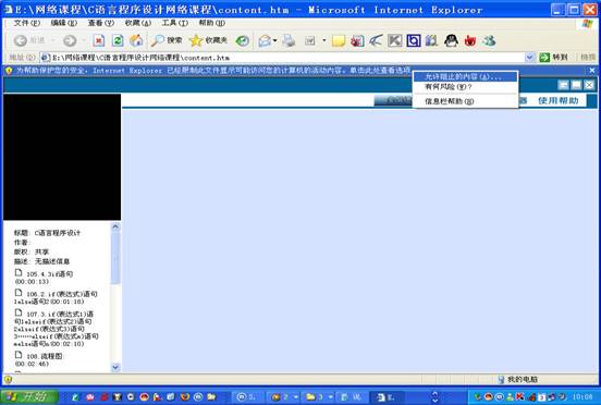 2、 点击“进入课件”后,系统直接调用IE浏览器,进入主页面开始进行学习。