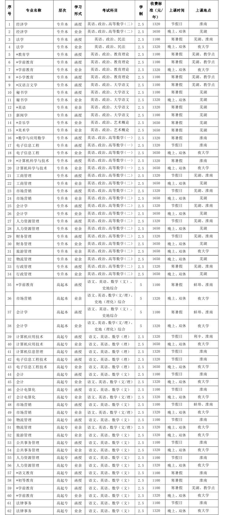★注:以上收费标准为目前省物价部门规定的学费标准,若省物价部门调整,则以最新文件执行,同时在职农村中小学教师报考87365最快检测中心师范类专业(专业名称前加“*”的为师范类专业),经核实后学费减免20%。