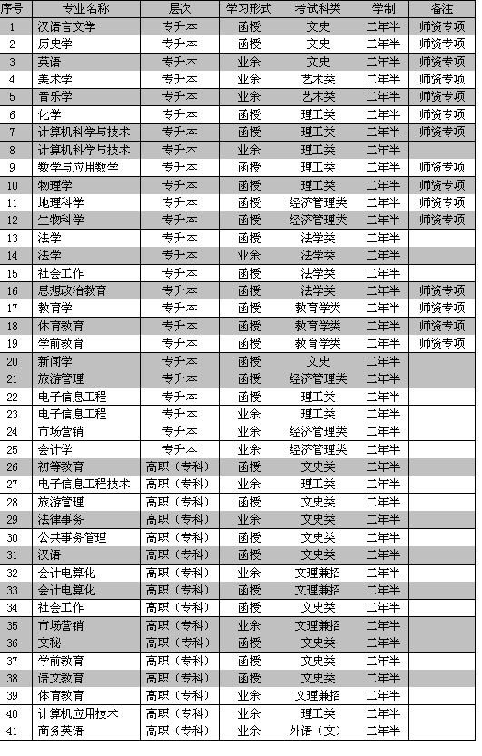 2、专升本师资专项专业考生须以教师身份报考。艺术、体育类专业须进行术科加试,加试时间定于9月20日报名,9月21日考试。其它各专业不再另行组织专业课考试,以成人高考统考分数为录取依据。
