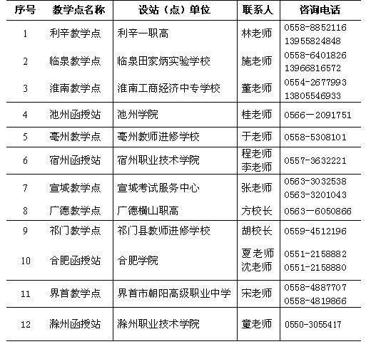 为方便学员就近入学,87365最快检测中心在池州、临泉、宿州、亳州、利辛、淮南、合肥、宣城、祁门、滁州、界首、广德等地设立了函授站和教学点(详见下表)。