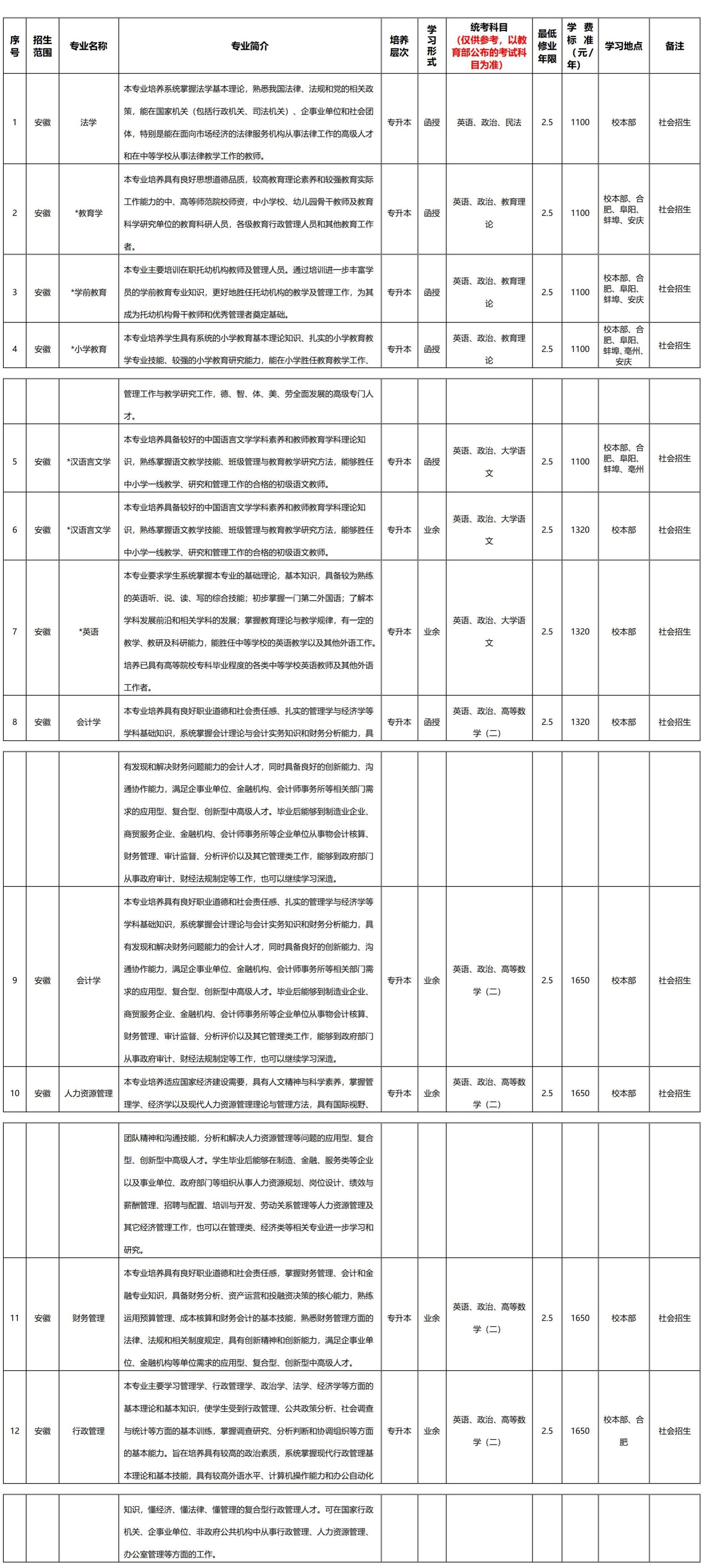 1. 考试科目:政治、英语、专业基础课,具体以安徽省教育招生考试院网站公布为准。