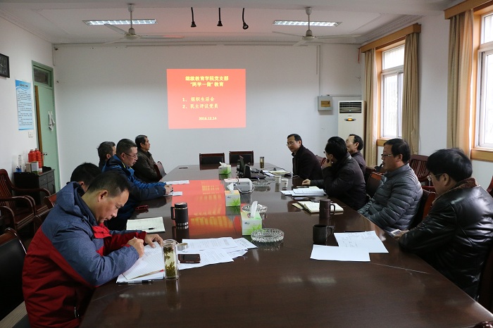 王学灵首先传达了校学组办发【2016】10号“关于召开‘两学一做’学习教育专题组织生活会和开展民主评议党员的通知”精神,代表支委对2016年支部工作尤其是“两学一做”教育作了全面总结,认为党支部能正确地贯彻和执行校党委和机关党委的工作部署和要求,认真学习党的基本理论、文件尤其是习近平总书记系列讲话精神,认真、扎实开展“两学一做”教育,通过学习党章党规,结合坚定理想信念、践行党的宗旨、坚守纪律底线三个专题学习讨论,努力提高党性修养,使全体党员在思想上、政治上、行动上与党中央保持一致,做到思想和行动的自觉。他还把支部全年开展的各项工作以及会前收集的意见和不足需今后努力的方向,向全体党员报告。随后,大家对支部的工作积极发言,对存在的不足提出了中肯的意见,对进一步做好支部工作积极献言。