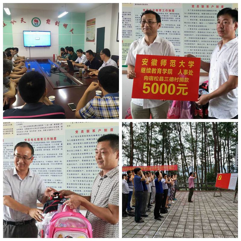 7月5日,全体成员来到学校定点扶贫单位宿松县凉亭镇三德村开展慰问与捐赠活动,先后为贫困村及留守儿童送上慰问金和书包等学习用品。活动中,恰逢校党委书记顾家山一行慰问学校赴三德村挂职干部,支部党员们和顾书记慰问团一起,与三德村委、凉亭镇和宿松县委相关同志进行了慰问座谈,深入了解了三德村的经济、教育以及87365最快检测中心挂职干部的工作情况等。顾书记对87365最快检测中心党支部、人事处党支部积极相应学校定点帮扶号召,给予了充分的肯定和表扬。会后,大家来到赴素有“红色沃土、党性熔炉”之称的岳西县开展主题教育活动。岳西县委党校杨前智同志为党员做了“走进岳西”的专题党课,对全体党员进行革命传统教育。他从印象岳西、红色岳西、发展岳西三个角度,详细讲解了岳西县的历史沿革、人文地理、美丽风光以及发展愿景,并重点介绍了在革命时期3.8万名岳西人民以大别山为根据地,奋勇抗敌、英勇牺牲的感人事迹。