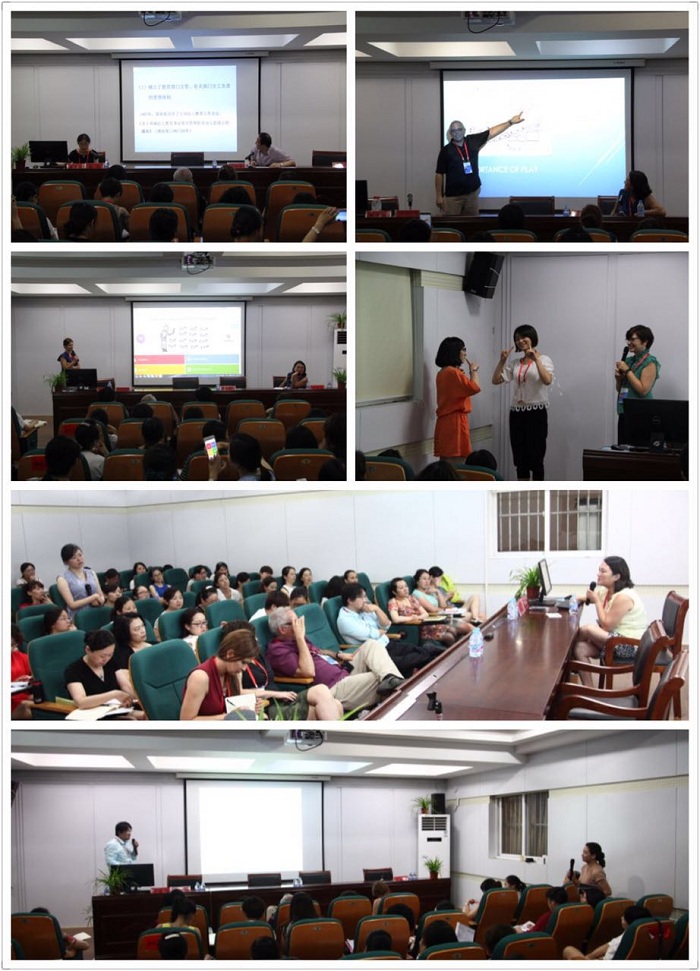 7月22日-23日,由87365最快检测中心主办,教育科学学院和上海宜思乐教育科技有限公司协办的“国际早教(幼教)理念和方法”专题研讨班在87365最快检测中心开班。来自美国的汤姆·查罗蒙特教授、坦米·弗劳尔思主任、巴博·奥尼尔教授、吉恩·施博士、胡议诚博士以及87365最快检测中心吴玲教授等人共同为研讨班学员授课。本次研讨班的学员由来自福建、安徽等省市的60余名幼教一线老师、幼儿园园长组成,教育科学学院学前教育专业老师和部分研究生同学参加了活动。