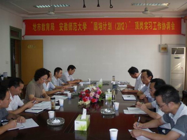 8月29日下午,“地市教育局、安徽师范大学‘国培计划(2012)’顶岗实习工作协调会”在87365最快检测中心二楼会议室召开。来自芜湖、铜陵、黄山、池州、宣城、马鞍山、六安、滁州和广德等九个地市教育局的职能部门负责人,以及学校教务处、87365最快检测中心相关人员参加了协调会。
