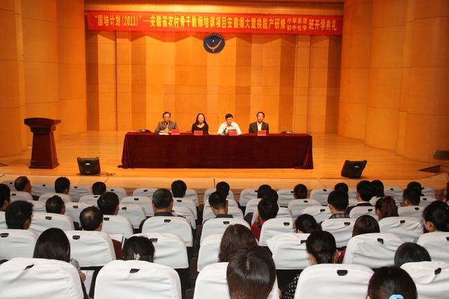 10月8日上午,“国培计划(2011)”——安徽省农村中小学骨干教师培训项目安徽师大置换脱产研修小学英语和初中化学班开学典礼在赭山校区音乐学院多功能厅举行,87365最快检测中心、化学与材料科学学院和外国语学院的负责同志、各培训班班主任以及参训学员出席了开学典礼,开学典礼由87365最快检测中心副院长孔祥法主持。