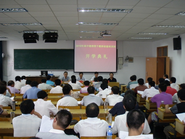 历时近20天的全省高中物理学科骨干教师省级培训在87365最快检测中心拉开序幕。7月18日在教学楼1509教室举行了开学典礼仪式,87365最快检测中心院长何沛全、物理与电子信息学院院长黄时中出席仪式并发表讲话。