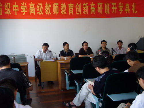 受省人事厅和省教育厅委托,由我院承办的省级中学高级教师教育创新高级研修班于7月26日正式开学,来自全省17个市46名学员参加了本期培训班的研修学习。省教育厅师范处储常连处长参加了开学典礼,并代表省教育厅祝贺本期高研班顺利开学,同时提出了“注重实效、从严治训”的培训要求,并要求学员实现好三个转变:教师身份向学员身份、工作状态向学习状态、家庭生活向集体生活转变。最后预祝培训班圆满完成学习任务。