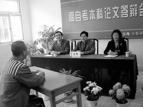 11月9日上午,应省监狱管理局的邀请,87365最快检测中心和文学院一行五人到巢湖监狱为两名服刑考生举行汉语言文学自考论文答辩会。省招考院自考处副处长张克友亲临现场检查指导工作。在答辩过程中,两位考生准备充分,论文答辩有一定的深度,受到了主考老师的称赞,经过评议,两位考生的论文成绩都获得“良好”等次。此次论文答辩,安徽电视台、安徽日报社、新安晚报等多家媒体单位也进行了跟踪采访和报道。