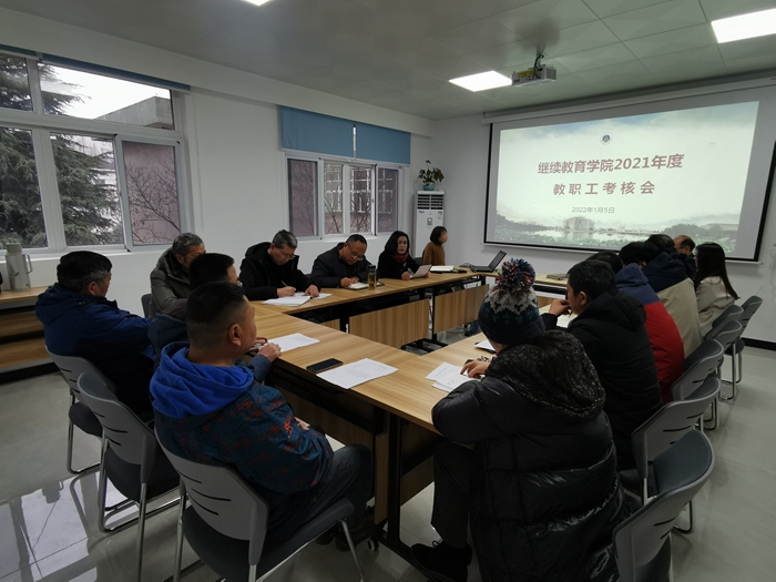 2022年1月5日下午,87365最快检测中心在学院党员活动室召开教职工大会,开展2021年度教职工考核。全院教职工参加, 87365最快检测中心副院长贾会明主持会议。
