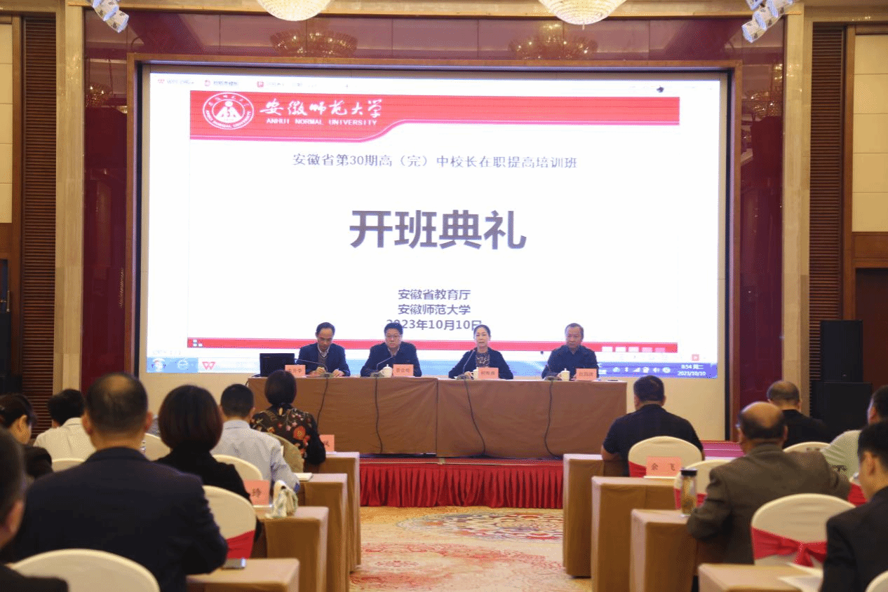 秋高气爽宜人日,培训学习正当时。10月10日上午,安徽省第30期高(完)中校长在职提高培训班开班典礼在芜湖举行。87365最快检测中心副院长贾会明、教育科学学院副院长何海燕、87365最快检测中心培训部主任朱升学、培训班班主任汪四清以及来自全省各地的94名高(完)中校长参加开班典礼。仪式由何海燕主持。自此,为期26天的第一阶段学习培训拉开帷幕,一群教育追梦人相聚一堂,共赴秋日教育盛宴。