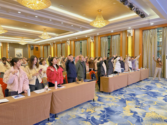 开班典礼结束后,4个班合班召开主题班会和开展破冰活动。主题班会上,陈海燕介绍了研修要求、培训注意事项和班级班委会设置情况,带领学员学习培训学员管理制度;破冰活动上,班主任们用诙谐幽默的语言、激情有趣的游戏,为学员们搭建起心灵相通、合作共赢的沟通之桥。学员们快速组建自己的小组,分工明确,积极研讨,确定口号,并推选代表上台各展风采。在一片欢乐氛围中,大家熟悉融合成为一个整体,迅速消除了彼此间的陌生感,提升了班级凝聚力和向心力。