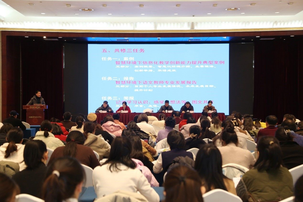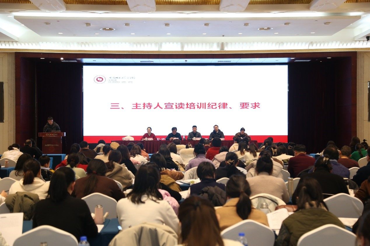 曹鹏鹏代表培训班班主任宣读了培训期间的纪律要求,提醒学员要在培训期间认真记录培训日志,及时在线上智慧教学平台完成课程签到、课程评价、课程反思、分组讨论等任务。