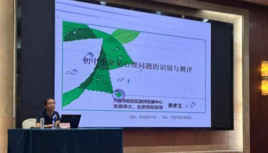 7月30日上午,六安市裕安区教体局高级教师黄孝玉分享的主题是《初中生常见心理问题的识别与测评》。 黄老师从具体的案例入手,讲解了初中生常见的心理问题的识别、测评及相应的解决方法。如何去家长沟通、如何走进学生的内心、如何关爱孩子这都是我们需要解决的问题,也是正在做的事情。通过黄老师的讲解,学到很多实用的方法、也找到了明确的工作方向。