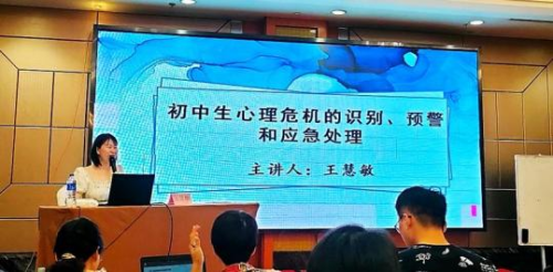 7月29日上午,芜湖市田家炳实验中学高级教师、国家二级心理咨询师王慧敏以“初中生心理危机的识别、预警和应急处理”为主题开展讲座。王老师从“中学生心理现状”、“校园心理危机的分类”、“校园危机干预的关键技术”、“心理危机信号及预警”、“心理危机的应对策略与机制”五个方面分享了自己的见解和相关经验,为学员们今后从事心理健康教育工作提供参考与借鉴,学员们受益匪浅。