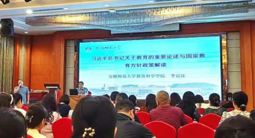 7月27日上午,安徽师范大学教育科学学院院长李宜江教授做了“习近平总书记关于教育的重要论述与国家方针政策解读”的主题讲座。李宜江教授从习近平总书记关于教育重要论述的科学内涵、新时代我国教育方针政策的内涵以及习近平总书记关于教育重要论述的贯彻落实三个方面阐述了自己的独到见解。现场学员被李宜江教授深入浅出的精彩课程深深吸引。