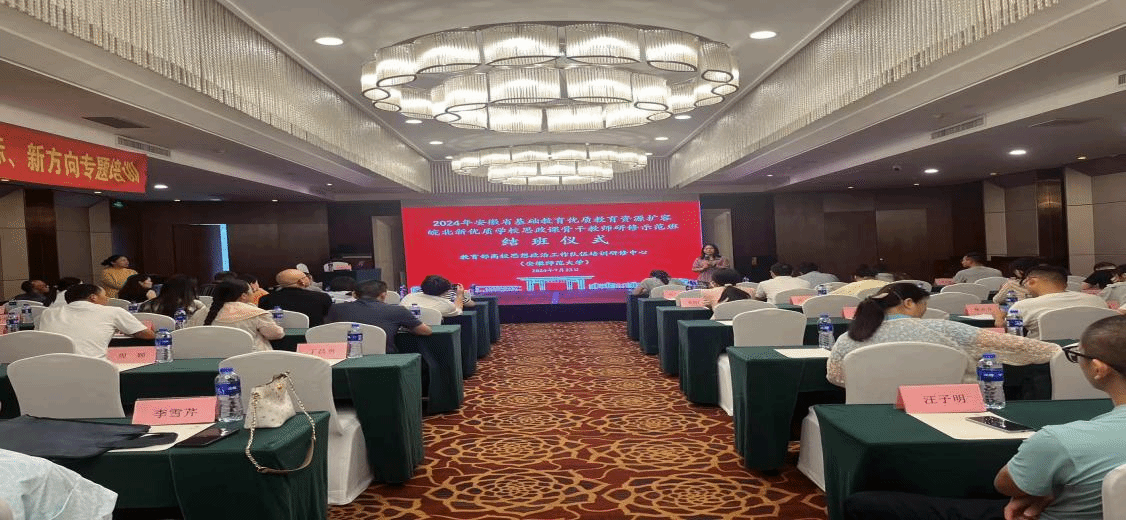 7月24日上午,由安徽省教育厅主办、学校承办的“2024年安徽省基础教育优质资源扩容师资培训项目——皖北新优质学校思政课骨干教师研修示范班”圆满结束。