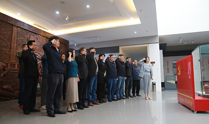 “我志愿加入中国共产党……”,参观体验结束后,在领誓人的带领下,党员们满怀忠诚、心怀敬畏地重温了入党誓词,铿锵有力的宣誓声久久回荡在新四军七师纪念馆内。这铮铮誓词让党员重温入党时的初心,牢记责任使命。这铮铮誓词将激励党员继续学习党史,坚定信念,凝聚力量。