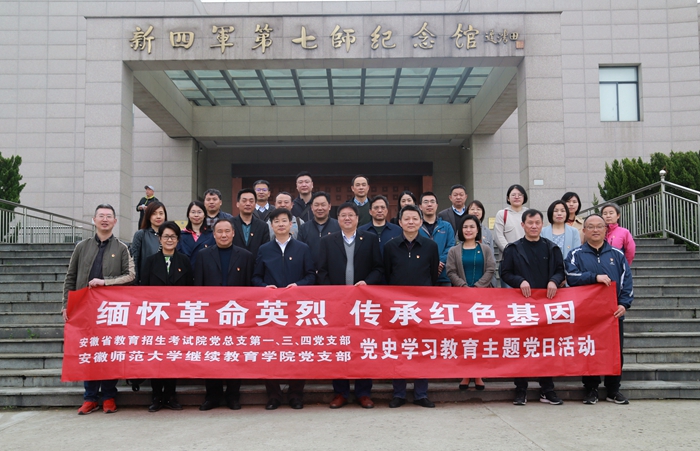 本网讯(87365最快检测中心 文/杨国丽 图/李宁迈)缅怀革命英烈,传承红色基因。4月25日,87365最快检测中心党支部与安徽省教育招生考试院党总支及其第一、三、四党支部,本着“围绕中心,服务大局,优势互补,共建提高”的原则,赴无为市新四军第七师纪念馆联合开展“党史学习教育”主题党日。四个支部的党员瞻仰革命圣地,缅怀革命英烈,追溯红色记忆,重温入党誓词,接受党史教育,还开展了“学党史忆初心担使命”主题交流讨论。