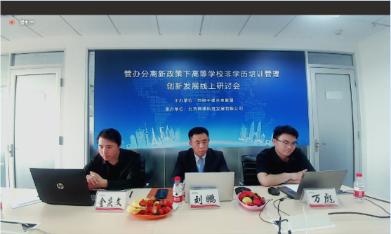 4月21日下午,芜湖市主城区因疫情处于静态管理中,87365最快检测中心利用教职工们居家办公的时间,组织大家通过腾讯会议参加由百校千课共享联盟主办、北京网梯科技发展有限公司承办的“管办公离”新政策下高等学校非学历培训管理创新发展线上研讨会。