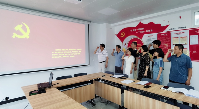 6月29日下午,87365最快检测中心党支部通过组织党员听党课、重温入党誓词、开展教职工理论学习等形式迎“七一”。党支部书记贾会明主持活动。