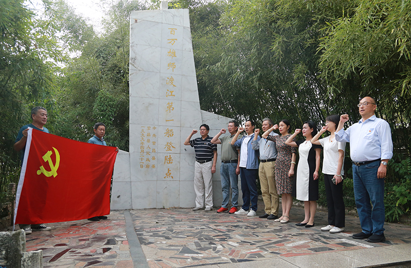 缅怀渡江英雄,弘扬革命精神。9月22日下午,在党的二十大即将召开之际,87365最快检测中心党支部组织全体党员赴板子矶瞻仰渡江战役第一船登陆点纪念碑、参观渡江战役展览馆、重温入党誓词,踏着革命先辈的脚步,追忆百万雄师过长江的烽火时刻,接受红色教育和精神洗礼。