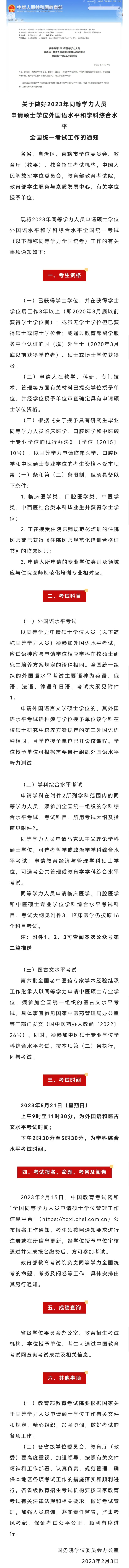 2023年同等学力人员申请硕士学位全国统一考试工作的通知
