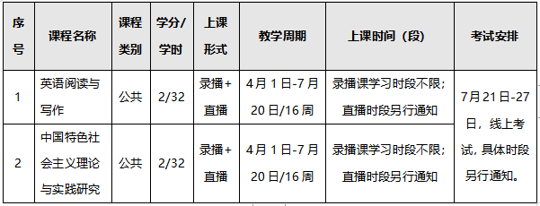 3、专业课程。根据各专业的培养计划通过录播或直播方式开展教学,具体时间以任课教师通知为准。